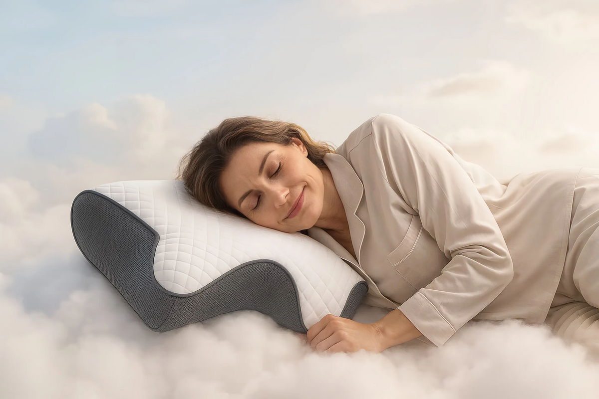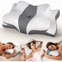 The NevoRest cervical pillow features an ergonomic butterfly shape, that ensures optimal neck alignment, reducing pressure and enhancing comfort while sleeping.